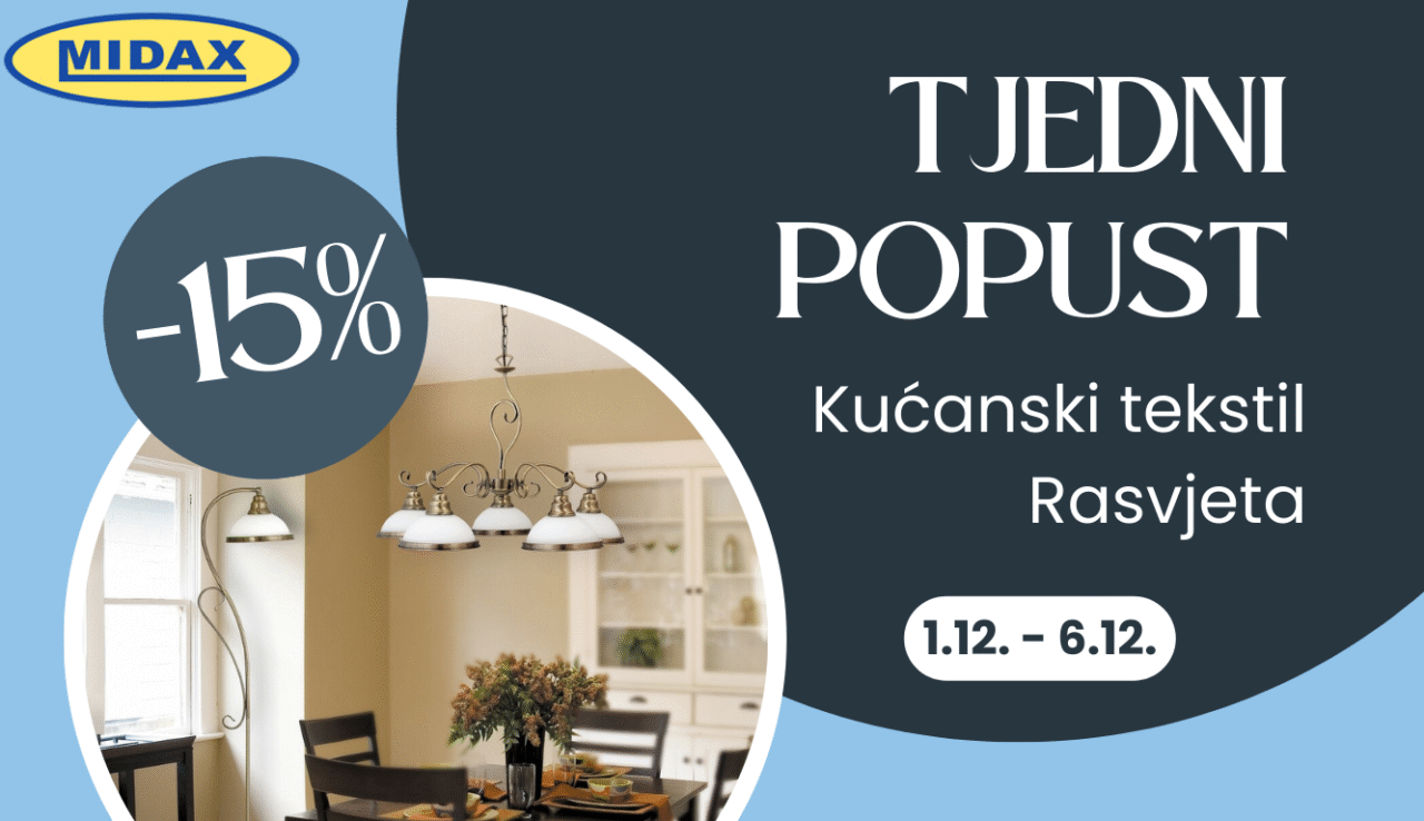 📣Tjedni popust 15%💥Ovog tjedna čeka vas 15% popusta na proizvode iz kategorije kućanskog tekstila i rasvjete. […]