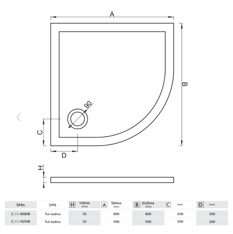 Naziv / model: Tuš kada plitka COPEN SOLILUX R900x30 C-11-9090R