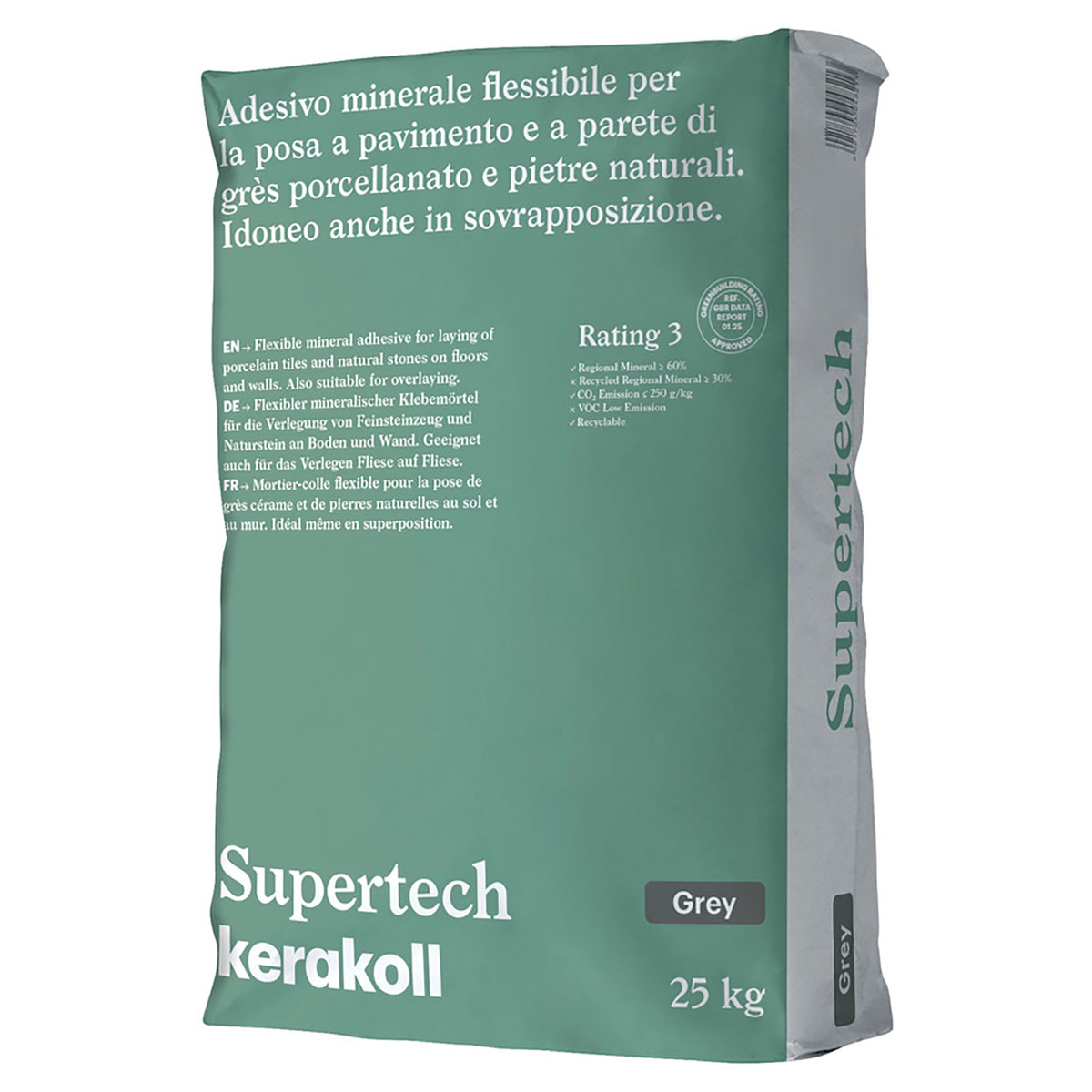 Kerakollovo mineralno ljepilo Supertech ekološki je proizvod, idealan za postavljanje svih vrsta keramičkih pločica, porculanskog kamena, mramora i stabilnog prirodnog kamena s visokom adhezijom, na podove i zidove, na mineralne ili cementne podloge. Njegova formulacija jamči visoku otpornost na vertikalno klizanje, osiguravajući dugotrajne rezultate. Ovo sivo ljepilo u prahu, klasificirano kao C2TE, prikladno je za unutarnju i vanjsku primjenu u stambenim, poslovnim i industrijskim prostorima, uključujući one izložene temperaturnim promjenama i mrazu.