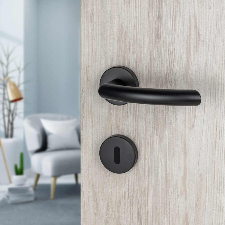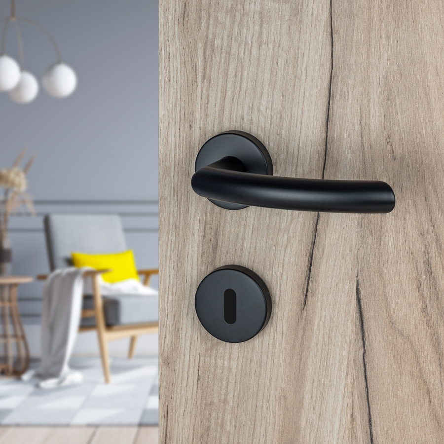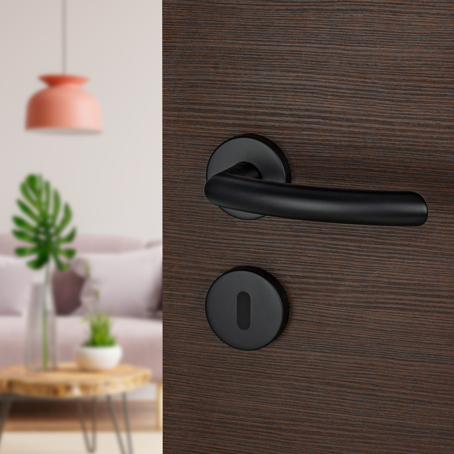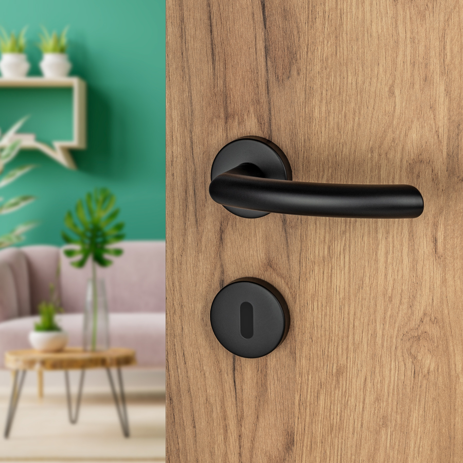 Šifra: 1135 Naziv/model: Kvaka Kubo crna mat Rozeta: Otvor za sobni ključ Boja: Crna Obrada: mat Materijal: Inox